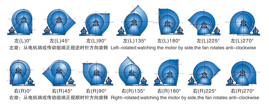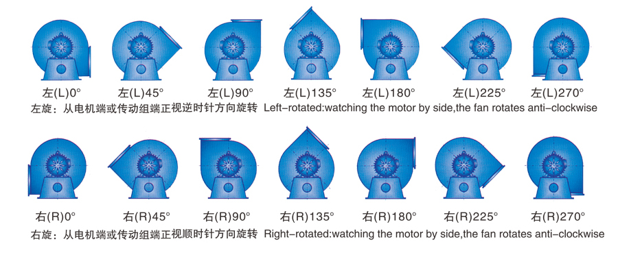 C型風(fēng)機(jī)出風(fēng)口角度位置圖:
